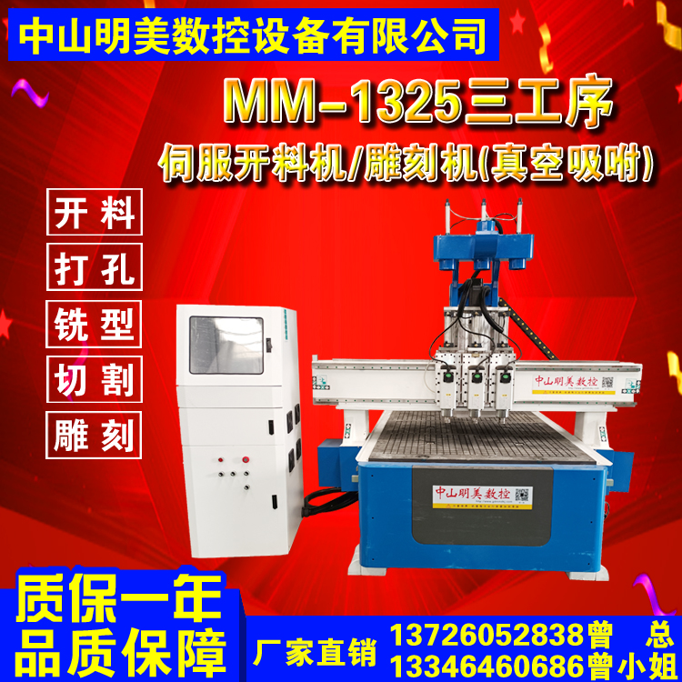 創新的設計及高精度的制造,使機床的性能比以前提高50%,高強度的鋼性結構。 2、三軸原裝進口導軌,絲杠,伺服/步進電機,速度快效率高,是普通機器的3-5倍。 3、高速度變頻主軸,扭矩大,轉速高,加工效率高,使用壽命長。